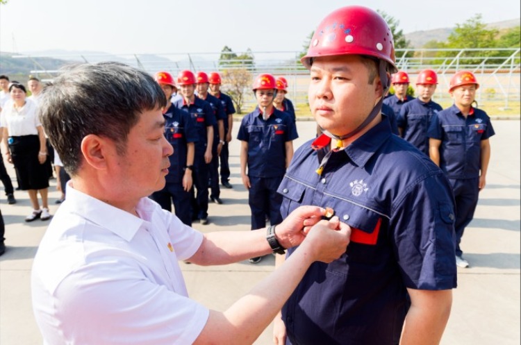 “恭喜你成為一名預(yù)備黨員,希望你再接再厲,干好本職工作,時(shí)刻以共產(chǎn)黨員的標(biāo)準(zhǔn)嚴(yán)格要求自己,在本職工作中發(fā)揮好先鋒模范作用”。攀西水工程公司黨支部書記郭家泉為新黨員況青泉佩戴黨徽,鞭策新黨員不忘初心、牢記使命,自覺履行黨員義務(wù),聽黨話、感黨恩、跟黨走,全心全意為人民服務(wù),矢志不渝為黨奮斗。